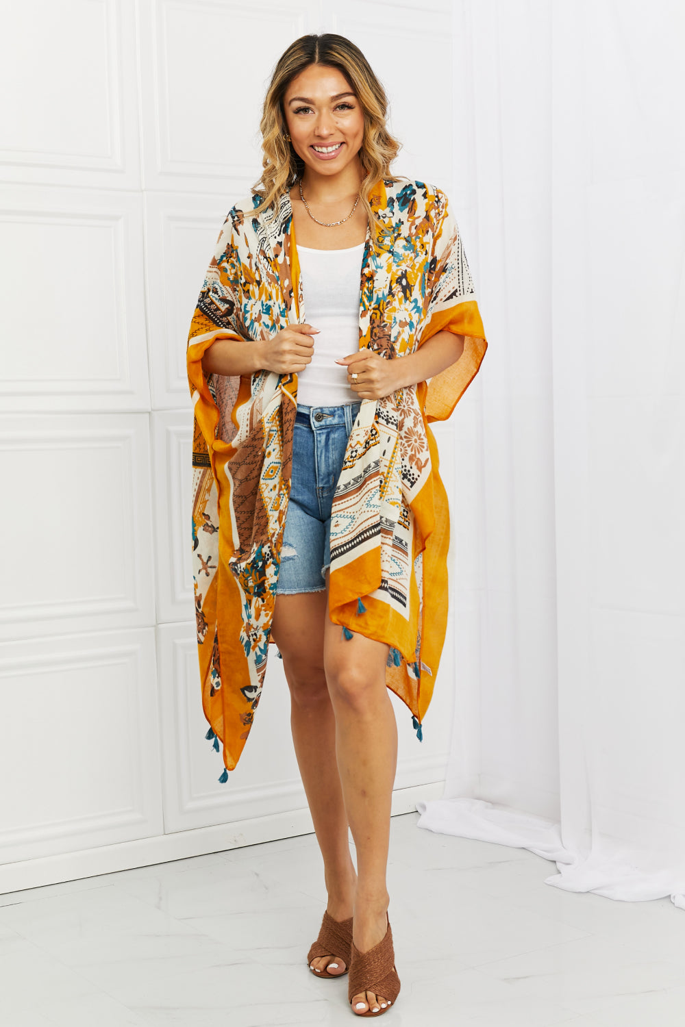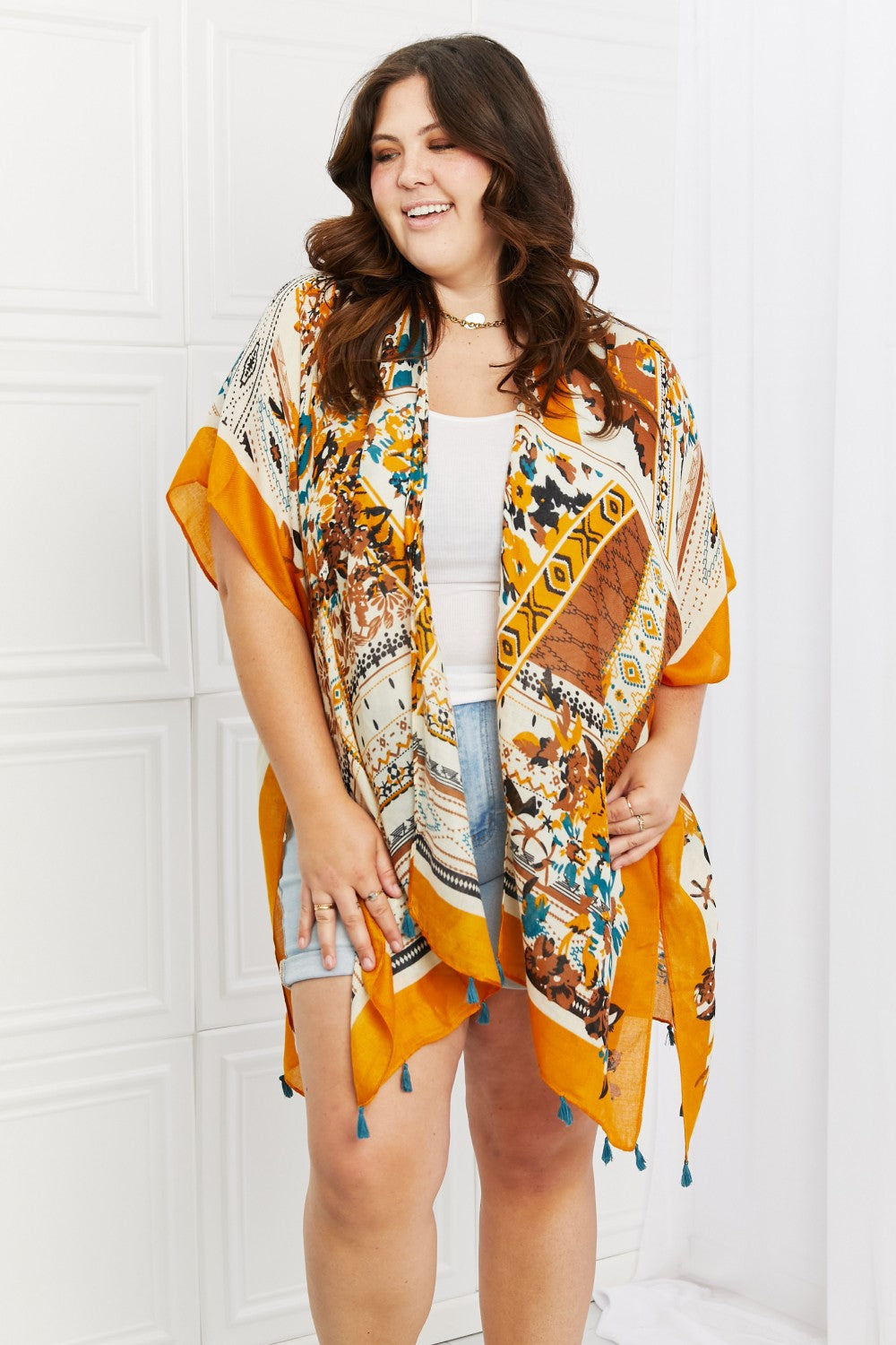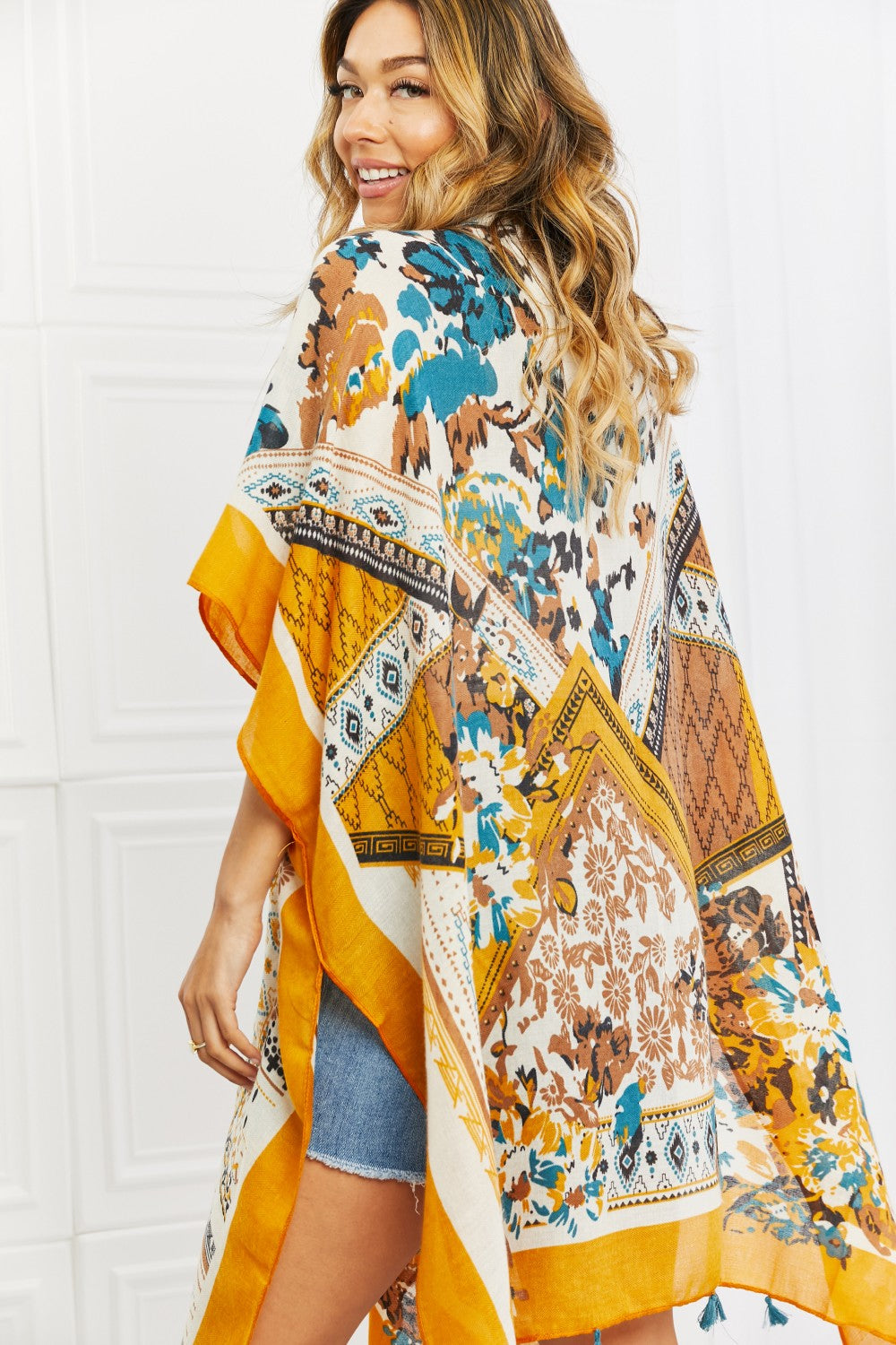 A super stylish kimono with an anstract floral pattern! This kimnono can be worn as a day top or even as a beach cover-up. The beautiful colors will stand out if wearing neutral colors!