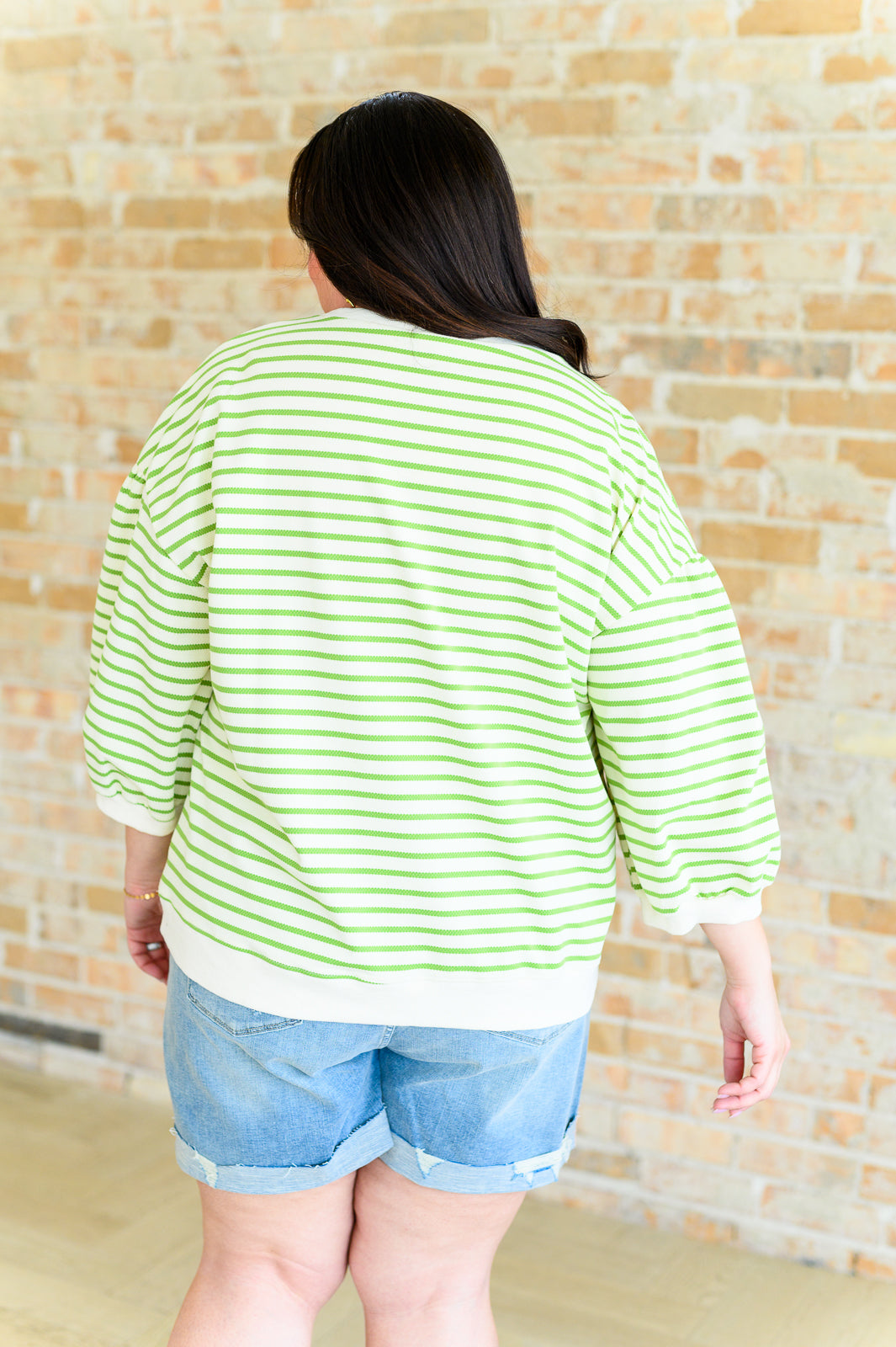 Add a playful touch to your wardrobe with our Enrichment Time Striped Top! Made with midweight sweater knit for a high-stretch, comfortable fit. Featuring a round, ribbed neckline, balloon sleeve, and exaggerated ribbed hem. Perfect for a quirky and fun look.
