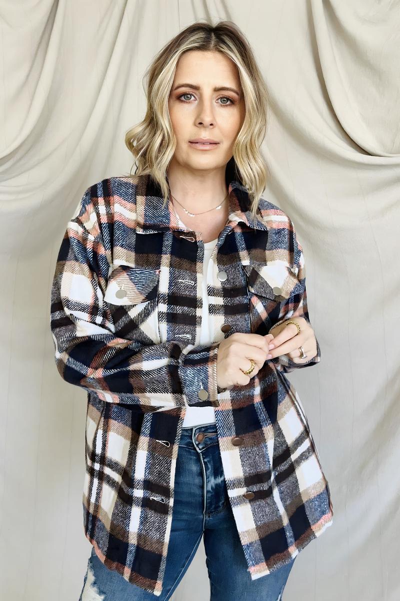 Oh My Gourd Plaid Flannel Shacket With Pockets