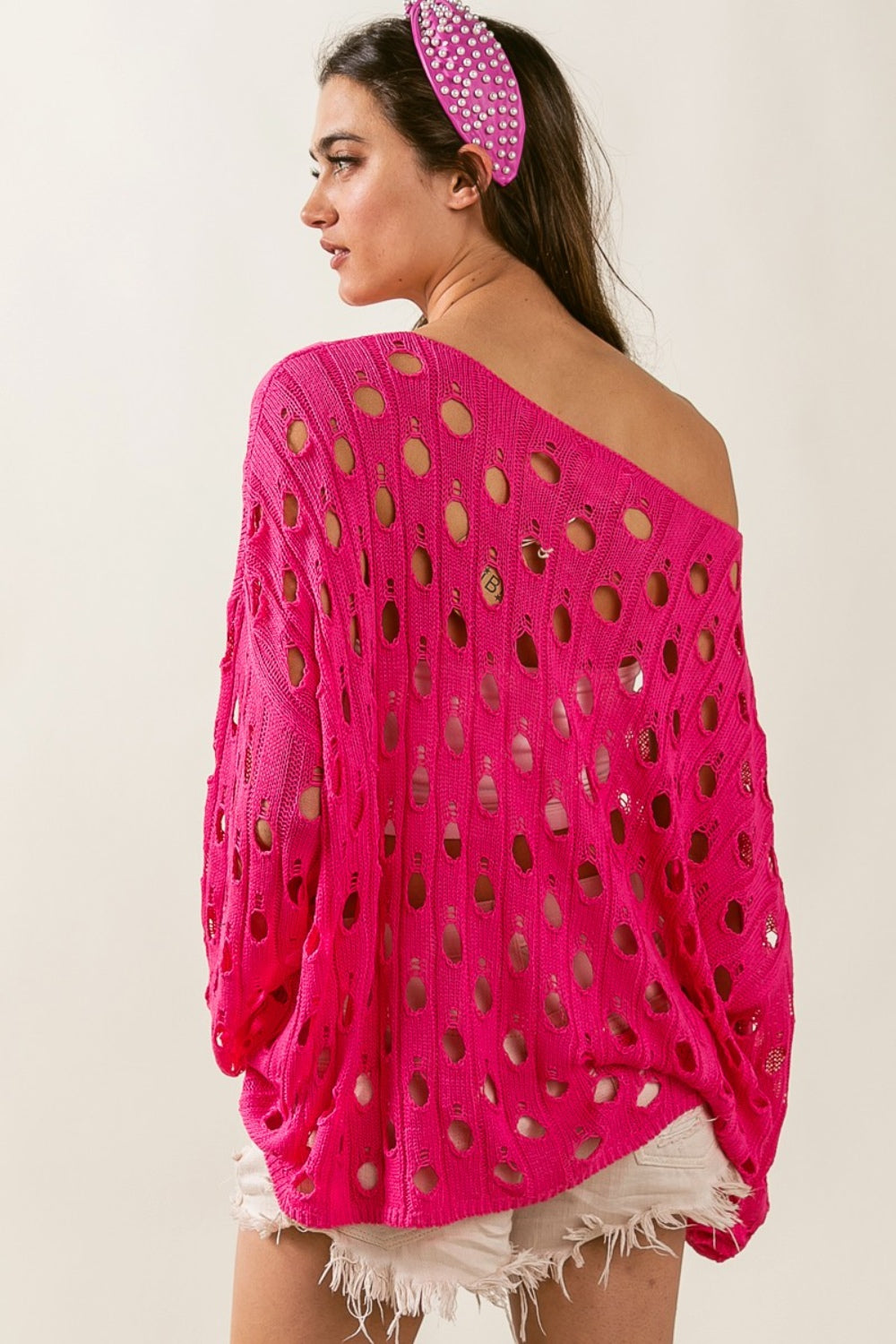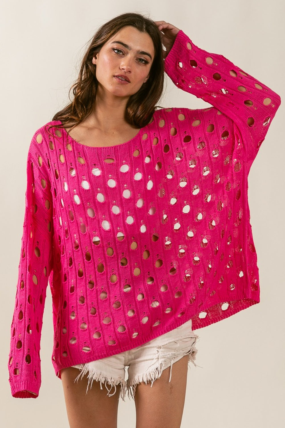 BiBi Hollowed Out Long Sleeve Knit Top