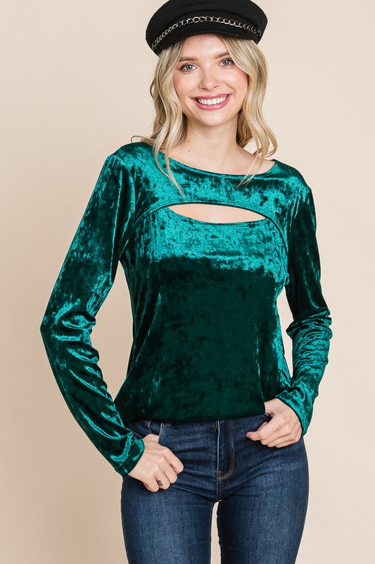 Emerald Ice Velvet Cut Out Neckline Top