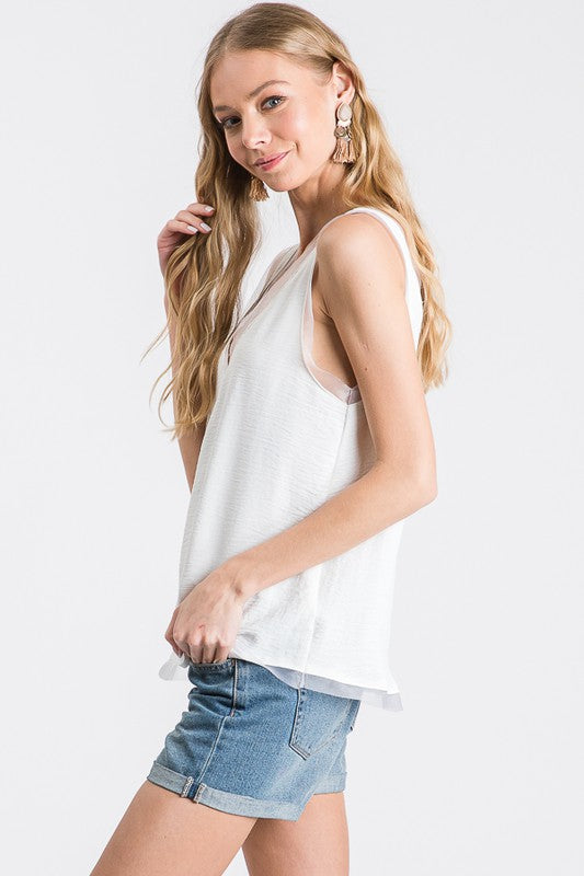 Ivory Raw Edge Sleeveless Top