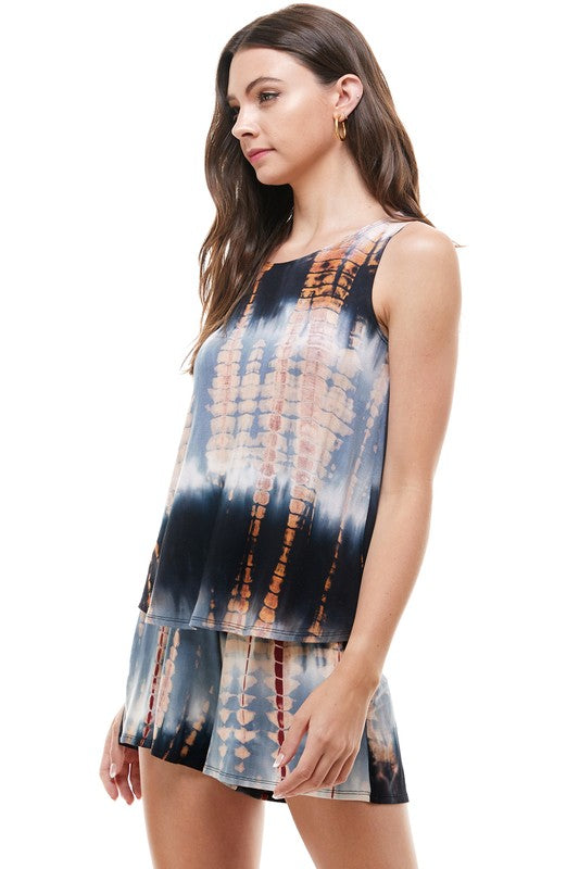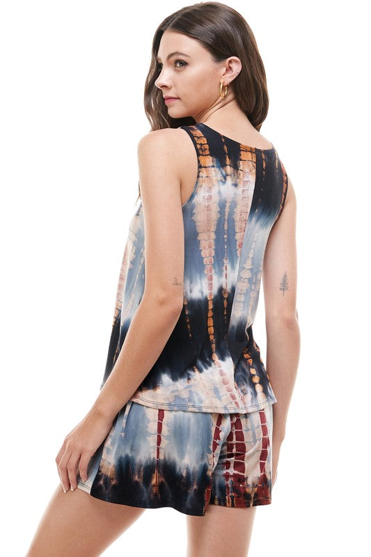 Set of sleeveless top and short tie dye is cozy, cool & comfy, perfect for lounging! Soft material and a relaxed fit. Made in USA