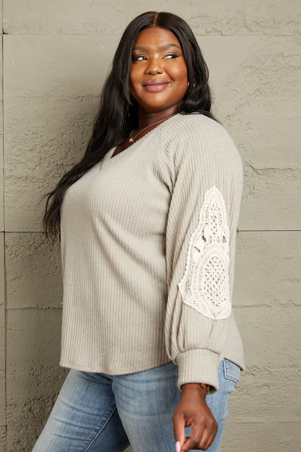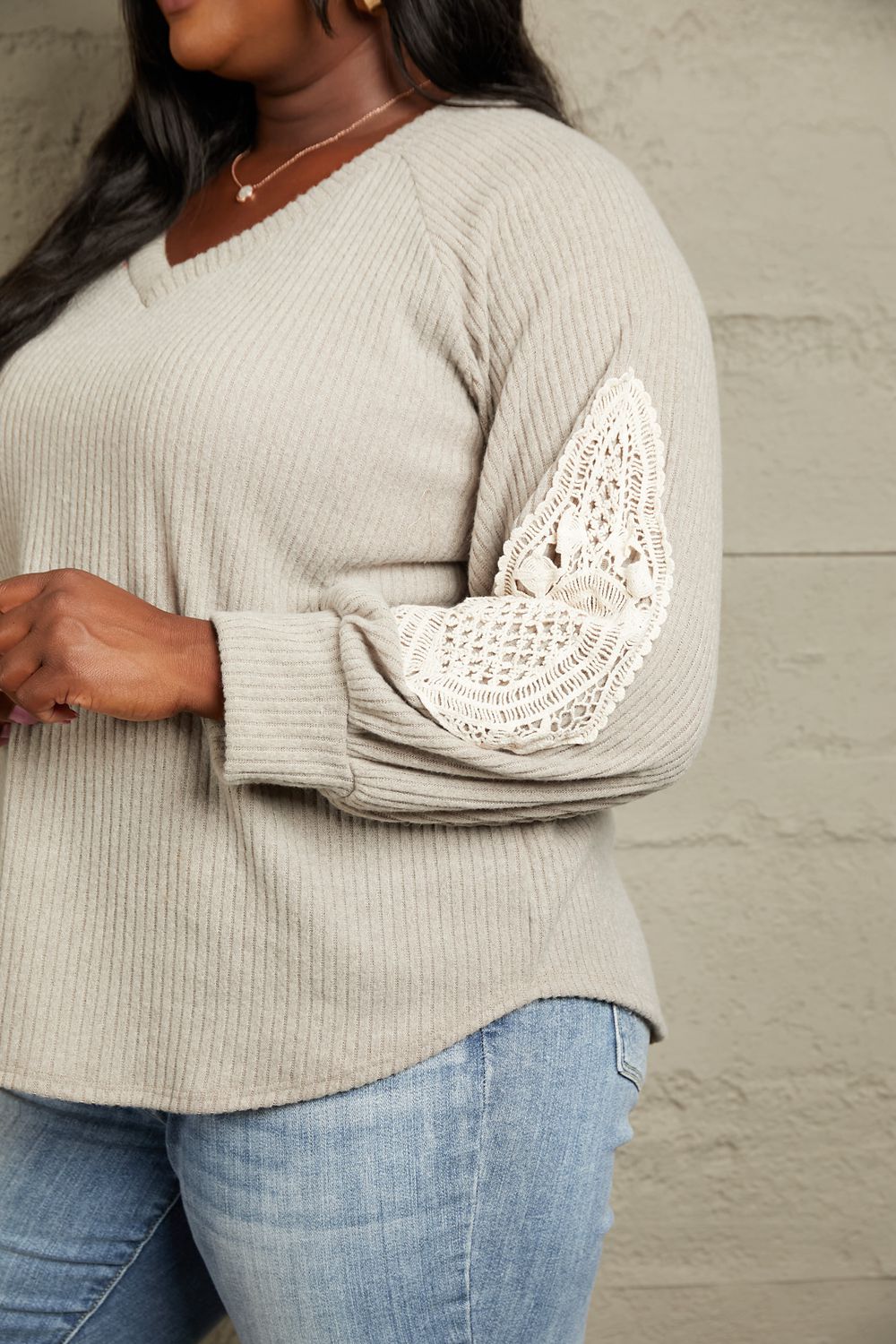 This sweater offers both warmth and style. The timeless V-neck design adds a touch of sophistication, while the intricate lace patch on the sleeve creates a unique and feminine aesthetic. Whether you're dressing up for a special occasion or adding a touch of elegance to your everyday look, this sweater is the perfect blend of cozy and chic. Experience the charm of lace and the coziness of a classic sweater all in one exquisite piece.