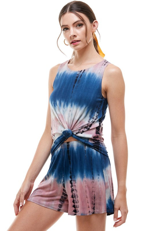 Set of sleeveless top and short tie dye is cozy, cool & comfy, perfect for lounging! Soft material and a relaxed fit. Made in USA