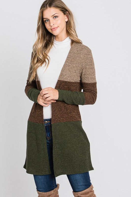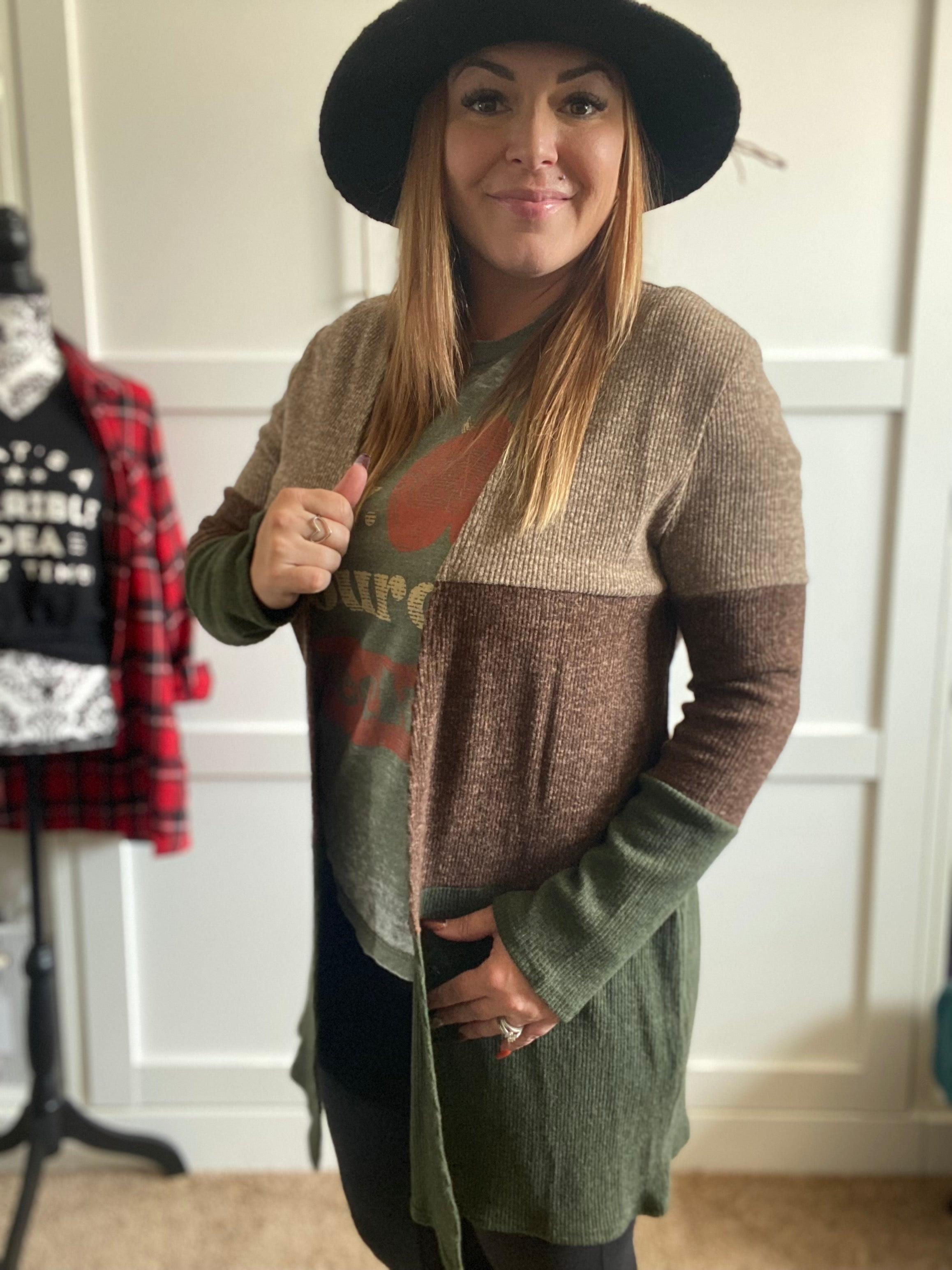 Hacci 2 tone Rib brushed color block cardigan will you cozy & warm! True to size fit