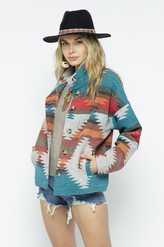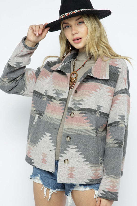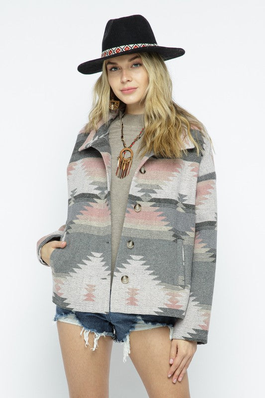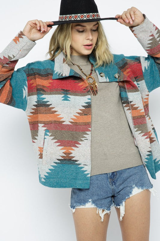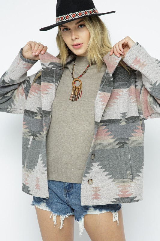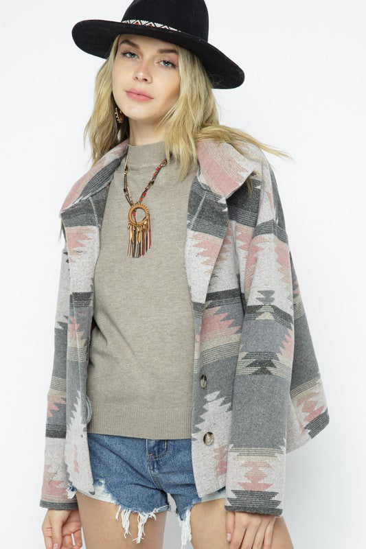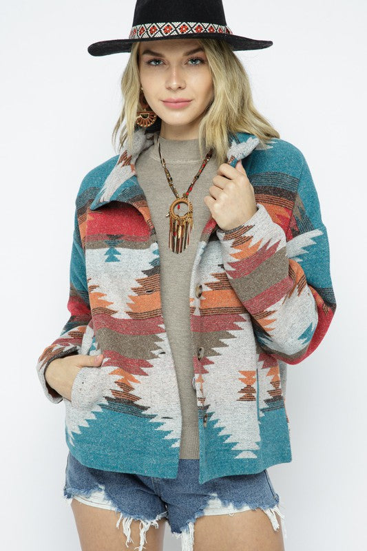 Introducing our Soft Comfy Lightweight Aztec Pattern Jacket - the perfect blend of style and comfort. This jacket features a soft and lightweight fabric that's a joy to wear. The eye-catching Aztec pattern adds a trendy and tribal touch to your look, making it a versatile choice for any occasion.