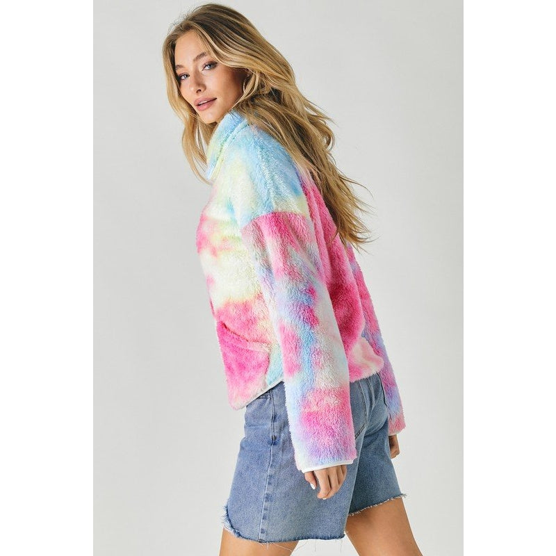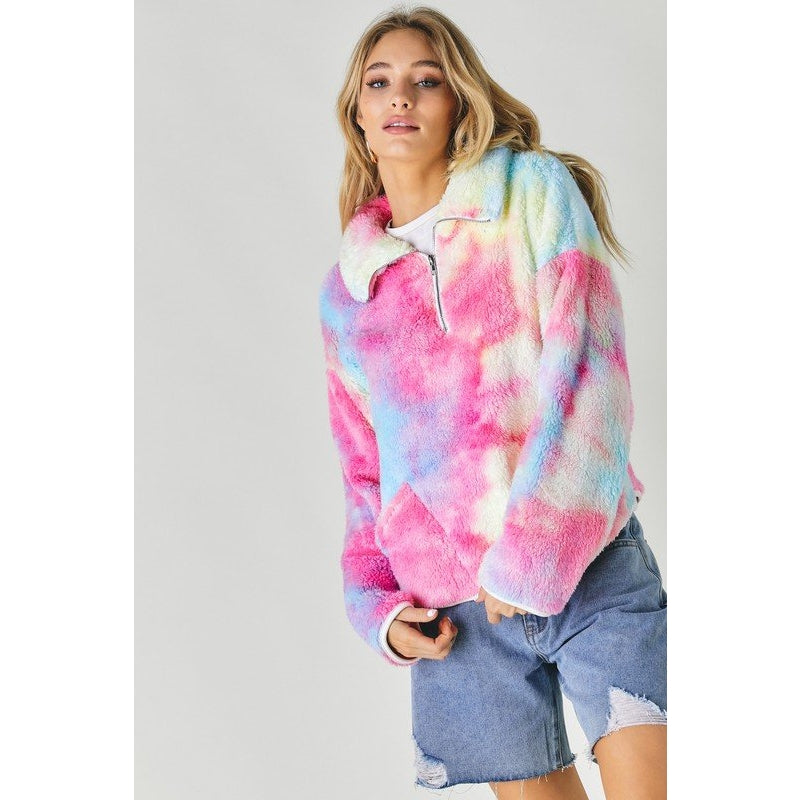 Tie dye pullover has pockets and half zipper. Incredibly soft. True to size